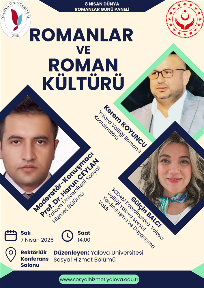 The panel titled “Roma People and Roma Culture,” organized as part of World Roma Day on April 8, will take place on Tuesday, April 7, 2026, at 2:00 p.m. in the Rectorate Conference Hall, with the participation of Prof. Dr. Harun Ceylan, Kerem Koyuncu, and Gülçin Balcı.