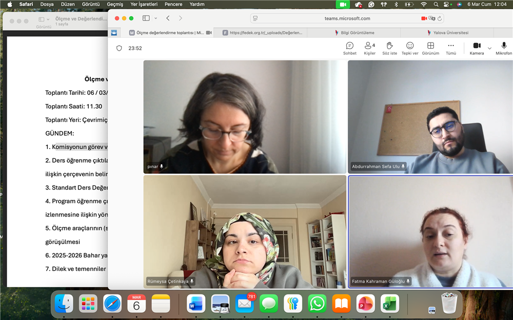 Sosyal Hizmet Bölümü bünyesindeki Ölçme ve Değerlendirme Komisyonu, 6 Mart 2026 tarihinde saat 11:30’da bir çalışma toplantısı düzenlemiştir.